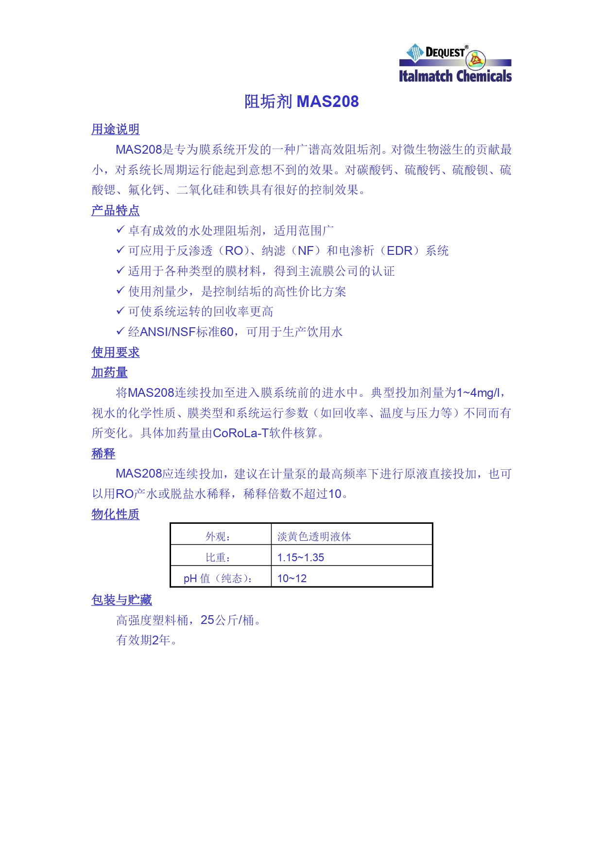 意特麦琪Italmatch食品级阻垢剂